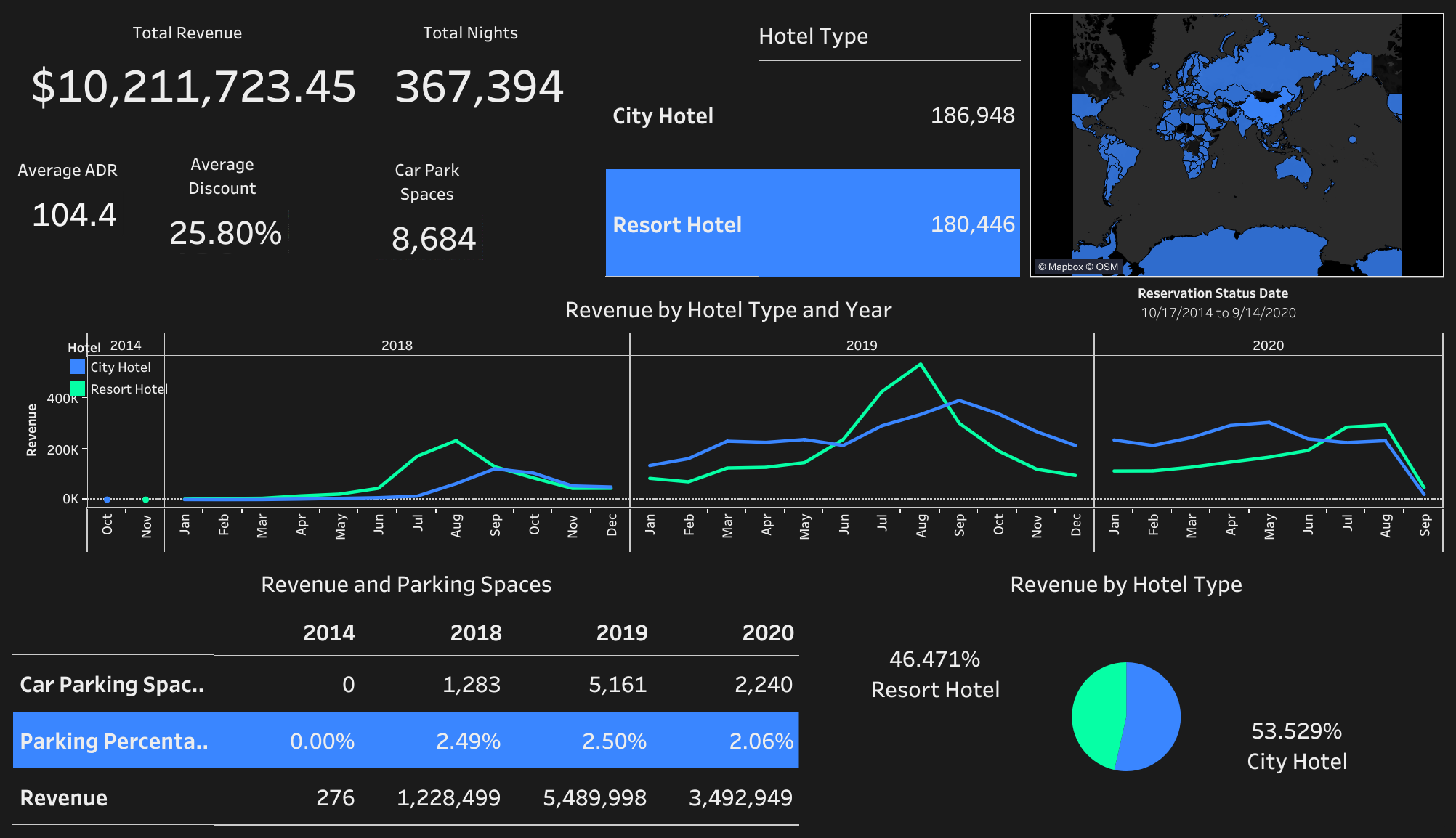 developed an interactive Tableau dashboard to analyze hotel